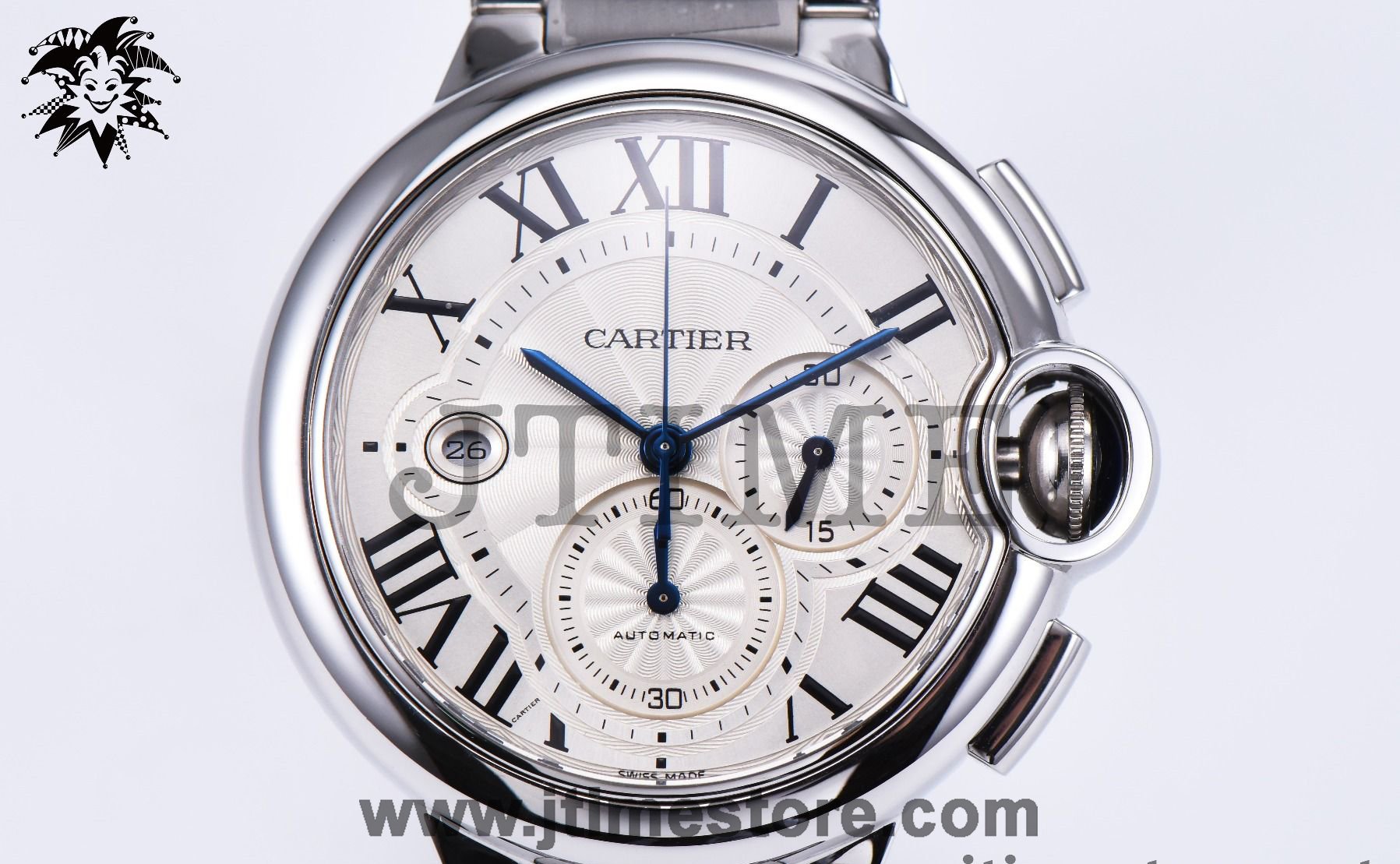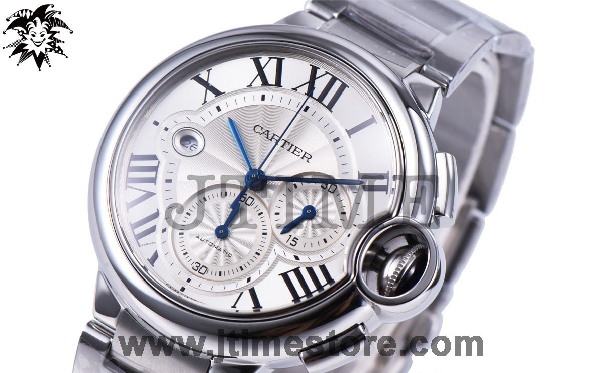 Ballon Bleu de Cartier Chrono W6920031 47mm SS ZF 1:1 Best Edition White Textured Dial on SS Bracelet A8101