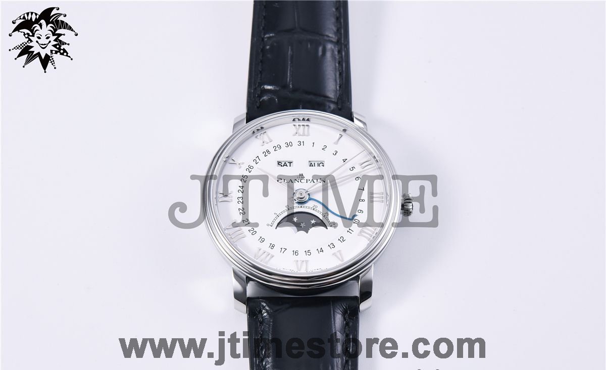 Villeret 6654 SS Complicated Function OMF 1:1 Best Edition White Dial on Black Leather Strap A6654 V2